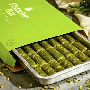W Pistachio Box oddajemy hołd geometrycznemu pięknu tradycyjnego tureckiego cukiernictwa, przenosząc wielowiekowe techniki zwijania na europejskie stoły poprzez zrównoważone, rzemieślnicze mistrzostwo, które celebruje dziedzictwo kulturowe.